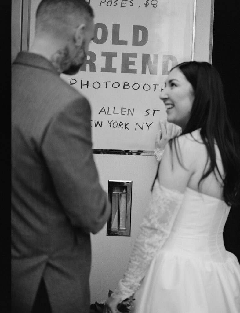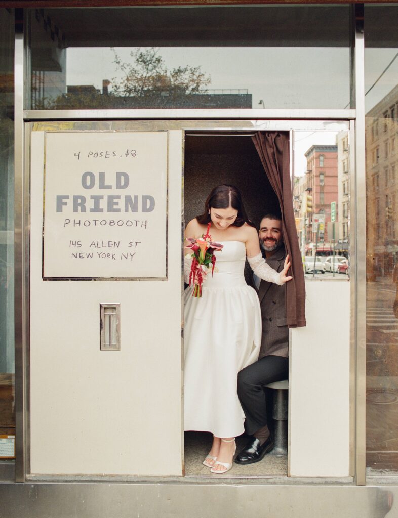 They’ve made it a tradition to find a real film photo booth every where they travel together, so this was the perfect meaningful way for Tony to pop the question. They thought to themselves that taking photos in this LES booth, scanning the film strips, & delivering the prints to their family & friend’s mailboxes would be the perfect way to announce their secret marriage.